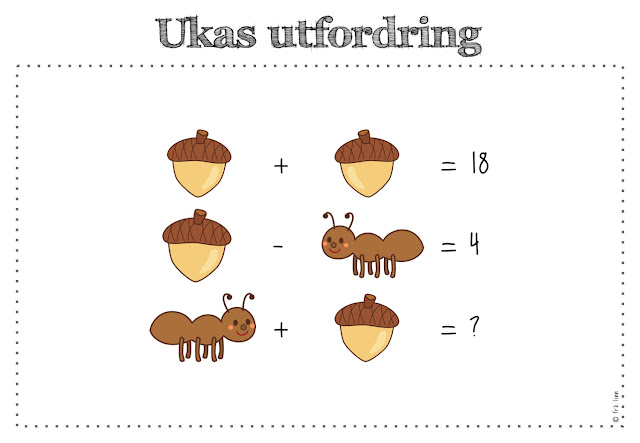 denne utfordringen har et pre-algebraisk fokus, og ufarliggjør regning med ukjente. tallene er ikke altfor vanskelige, men oppgaven er kanskje ikke kjent. her må elevene regne i flere omganger for å finne ut hvor mye hver av de to figurene er verdt.